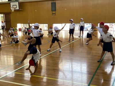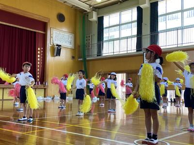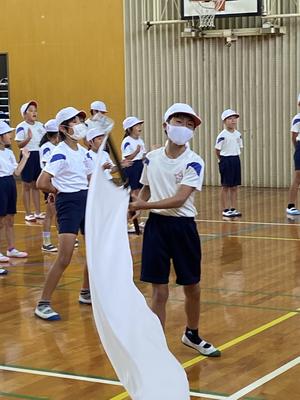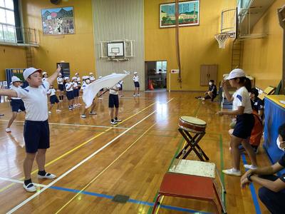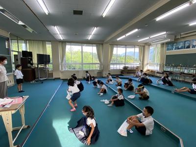 準備が終わると、高学年の表現の練習が。雨で運動場を使えなかったで、最後の仕上げ練習!