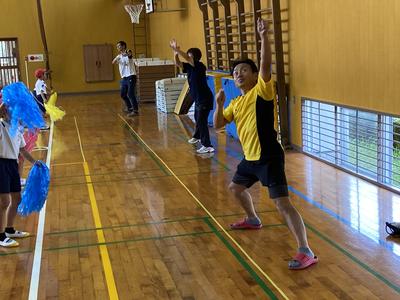 しかし、メンバーは1年担任、3年担任(体育主任)、4年担任、5年担任に教務主任。低学年・高学年が踊るダンスの練習ではありません^^!この日は、中松小学校伝統の「仮川ダンス」の練習会があり、参加する5人はその事前練習をしていたのです。