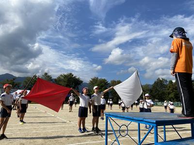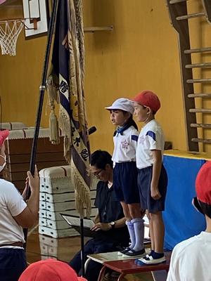 1年生の「開会の言葉」、応援団長による「誓いの言葉」、6年生女子の「競技上の注意」など、それぞれの役割をしっかり果たしてくれました。