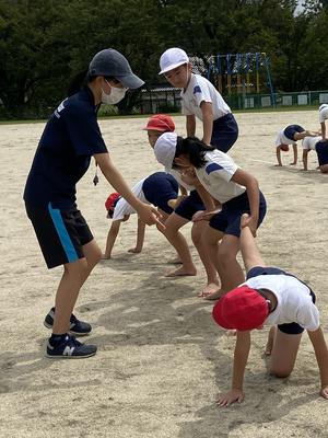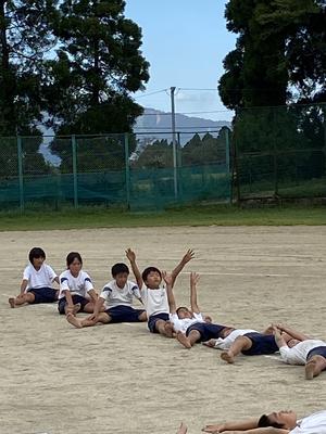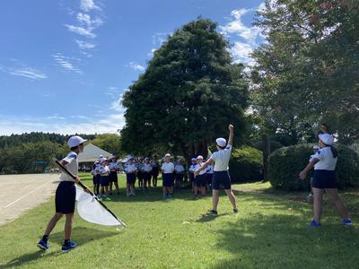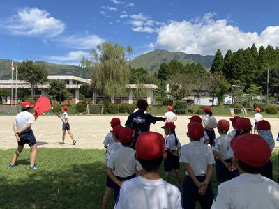 気象庁のHPのアメダスで南阿蘇村の今日の最高気温は33.3℃と今夏の最高を記録していました。しかし、そんなことはおかまいなし。昼休みには体育委員会主催の縦割り班を紅白2チームに分けての全員参加の「大しっぽとりゲーム」が行われました!