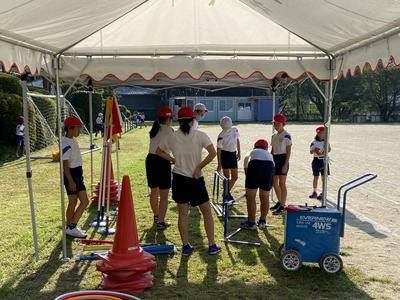 また、本部前では、保健安全委員会と保健室の先生が競技の際の消毒作業の手順を確認!