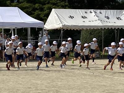 早速、徒競走。時間短縮のために各学年の1,2組目だけが走りました。