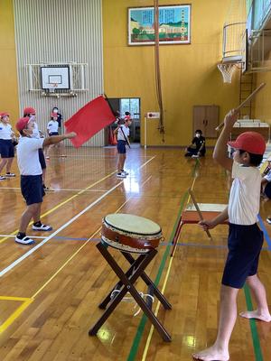 今年度の運動会では、体育委員会が笛を吹いて入場します。