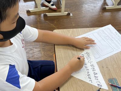 「中松小学校最初で最後の応援団なので・・」と、運動会への各自の思いを書いているところでした^^!