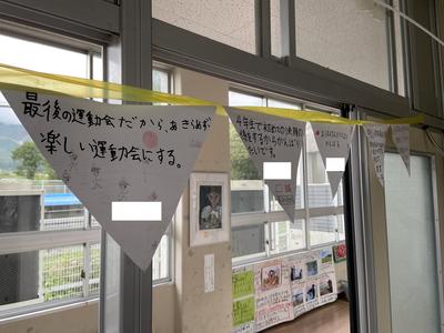 運動会への思いを書いた紙は、各学年、運動会当日に1年教室~2年教室から職員室前の窓につるして掲示されるそうです^^!