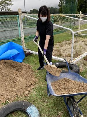 子どもたちが帰った後は、教職員と「グランド整備のため、可能な方は4時30分にお手伝いを!」とのメールに応えて下さった保護者の方々とグランド整備を^^!