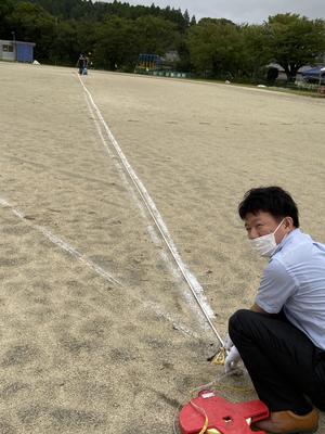 みんな泥だらけになりながら頑張っています^^!ラインの石灰がズボンから頭まで付いていました^^!