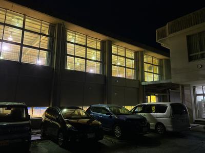 体育館に煌々と明かりがついています!中を覗いてみると・・・・。