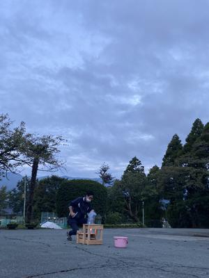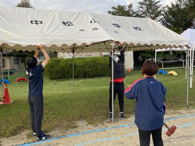 予行練習の当日の朝。5,6年生が道具の準備やテント立てのお手伝いをしてくれます。これも、中松小学校の伝統。新しい学校でも、引き継いでいって欲しいものです^^!