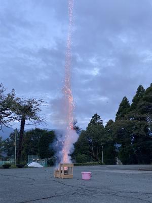 6時1分過ぎ職員室には爆竹の「パン パ パン パーン」と威勢のいい音が響きます。