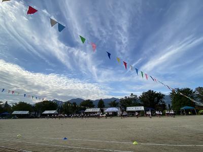 青空のもと、中松小学校最後の運動会が始まりました^_^!