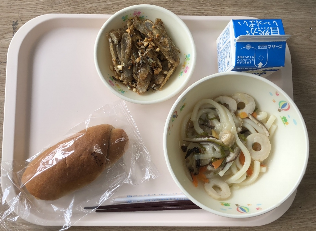 本日使われているリンゴは、「ふじ」という品種です。リンゴが旬の季節は、秋~冬にかけてですが、保存が容易なため1年中食べることができる果物です。甘酸っぱいリンゴには、酸味の素である、クエン酸やリンゴ酸という栄養素が含まれており、体長を整えてくれます。また、お腹の調子も良くしてくれるので、しっかり食べて風邪に負けない体を作りましょう!