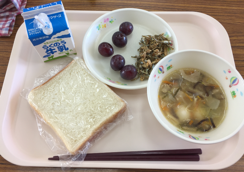 本日はデザートに葡萄がありました。葡萄を洗うときはお酢を混ぜた水で洗うそうです。久留米市田主丸町の西さんの葡萄で20年以上も前から学校給食に使われている葡萄だそうです。子ども達もおいしそうに食べていました。