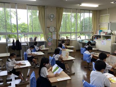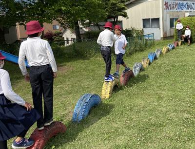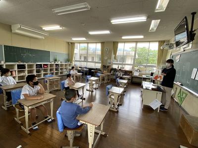 運動場を見ると、5年生がタイヤ陣取りで、あと少しというところでお互いジャンケンに負け、いつまでたっても終わらないという状況に盛り上がっていました。子どもの頃されませんでした?(上の県名は、担任に聞いたら「岡山県」だそうです。4年生の子どもたちは、この休校中家でかなり覚えたそうです!)