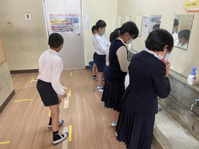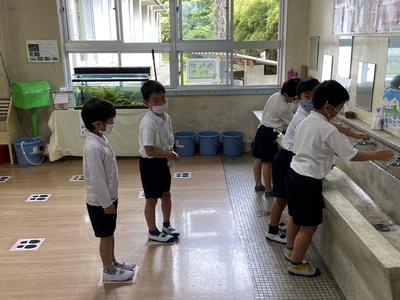 低学年は、手洗いのソーシャルディスタンスもだいぶ上手になりました^^!