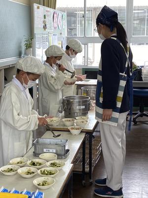 写真からもわかように、素晴らしい姿勢で黙々と食べていました。おかわりをする子も続出し、なんと、大きいおかずの食缶もサラダの食缶も空に!ホント初めての給食とは思えない堂々した食べっぷりでした^^!