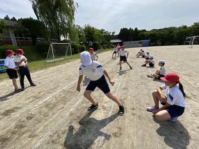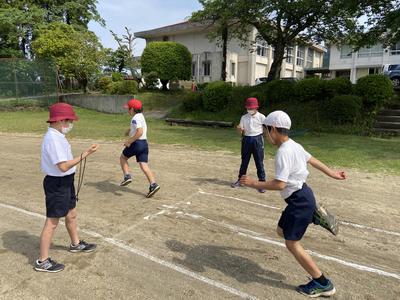 これまでも登校日に運動場で学級ごとに遊んだり体育っぽいことをする姿は見ましたが、体育の服装を着て運動する姿は新鮮に感じました。5年生は、スポーツテストの練習をしていましたが、練習を始める前の13分のアップで既にバテてていたということでした。これから、体力も回復させねばなりません。