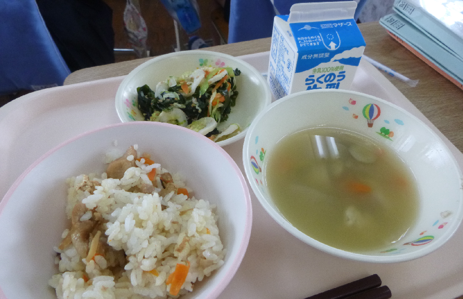 ご飯にたくさんお具が入っていると食べごたえがあり、やさいやきのこもおいしく食べることができますよね。子どもたちもたくさんおかわりしていました。