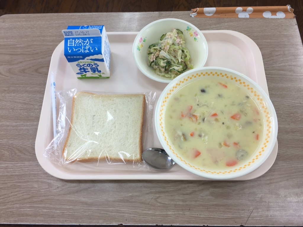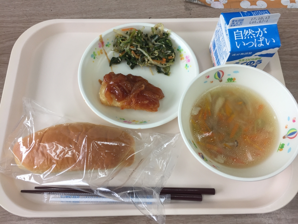「今日はえび団子スープのお団子が大人気でした!」(3年担任)