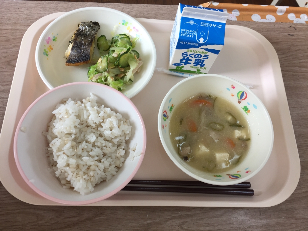 今日のグラタンは、給食センターでバターと小麦粉、牛乳を使ってホワイトソースを手作りし、クリームシチューの要領で、固めに作った物を、アルミカップに入れ、チーズ、パセリをのせてオーブンで色をつけています。とても手間のかかる作業ですのでセンターの方々に感謝していただきましょう。