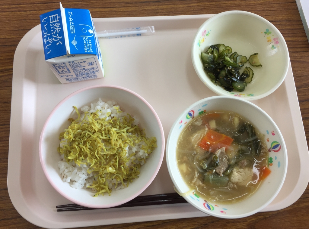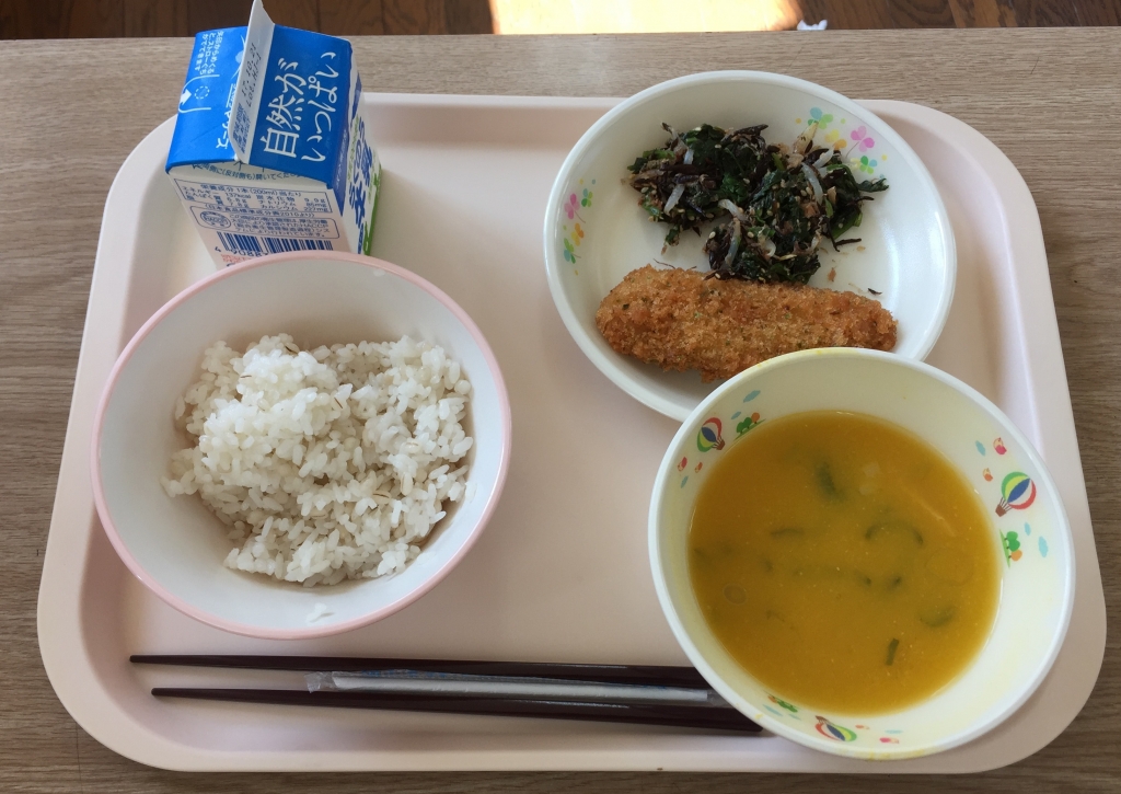 いわしの子どもをお湯でゆでて、天日干しにした物が「ちりめん」です。ちりめんには、カルシウムがたくさん含まれており、骨や歯を丈夫にしてくれます。今日は、カレー味のちりめんです。たくさん食べて体を強くしましょう。