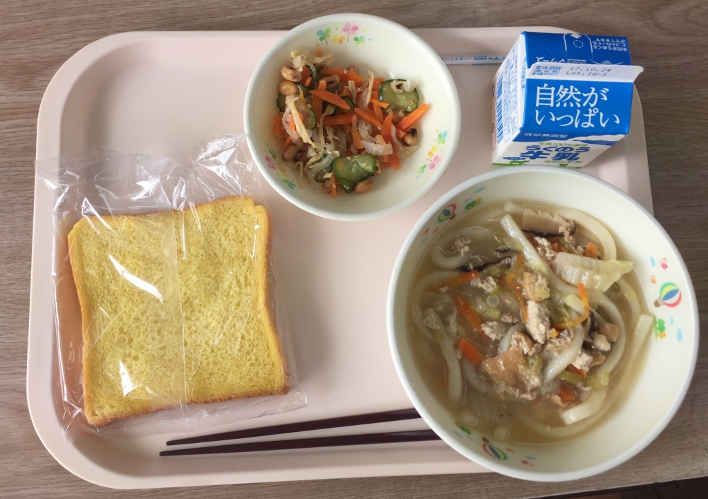 うどんは、のどごしが良く、食べやすいので、給食でも人気のメニューです。