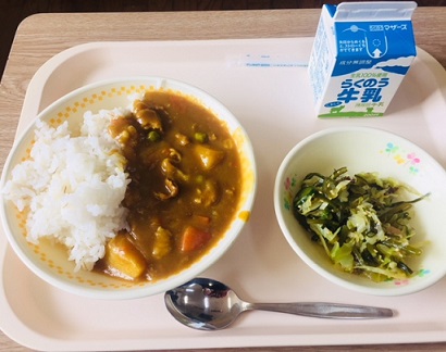 今日の給食は南阿蘇村教育研究会食育部会が募集した給食献立コンテストの最優秀献立賞を受賞した南阿蘇西小の子どもさんの献立によるものです。今日は給食試食会ということでもあり、大好評でした。あかうしは熊本県の特産品として有名ですが、地元の産品をおいしくいただける幸せを感じています。年に数回のあかうしを使った料理、子どもたちも楽しみにしています。副菜もにんじんとピーマンの相性もよくおいしくいただきました。