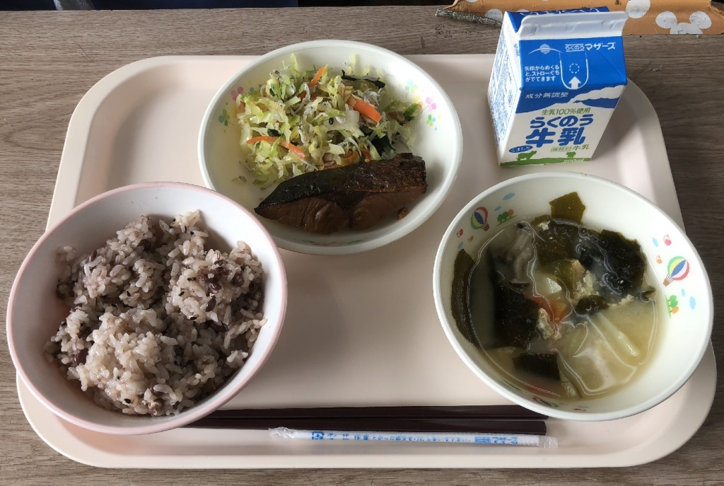 今日の献立は、献立コンクールの中学校の部で最優秀賞に輝いた献立です。中松小学校の卒業生でもある南阿蘇中学校の3年生が「僕の好きなもの定食」という名前で考えています。また、本日の赤飯に使われている餅米は中松小学校の5・6年生が育てた中松っ子米です。美味しくいただきましょう。今日の給食は中松パワーでいっぱいですね。美味しくいただきましょう。