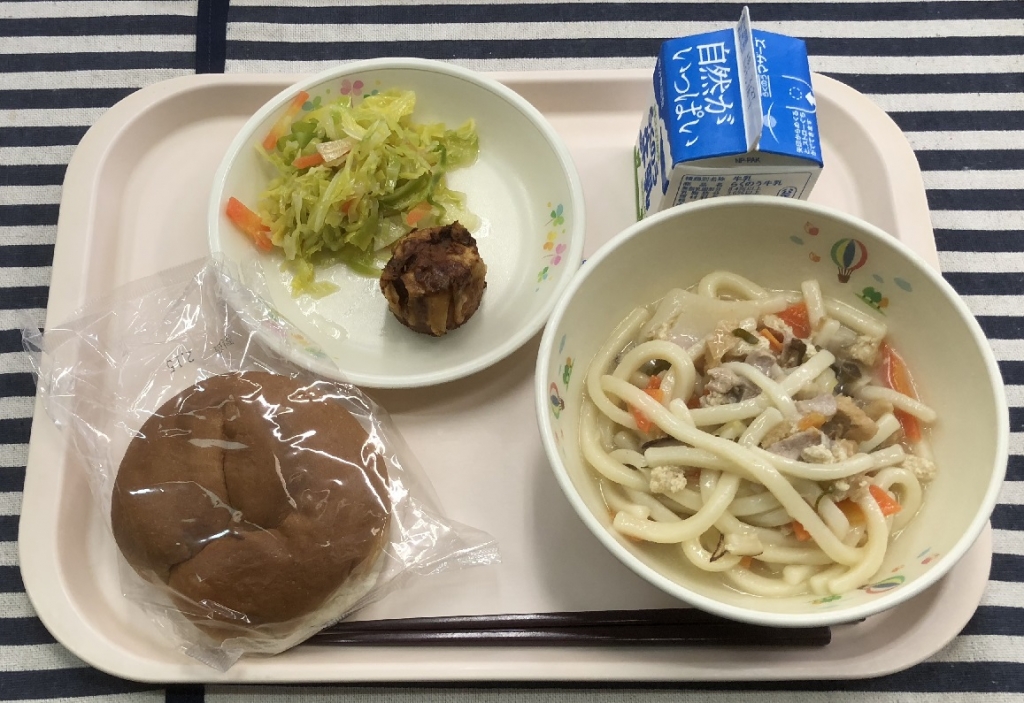 豚肉は中国で古くから食べられており、日本で食べられるようになったのは、明治時代からだそうです。豚肉は牛肉の10倍のビタミンB1が含まれています。ビタミンB1は、イライラを防ぎ、疲れた体を元気にする効果もあり、脚気(かっけ)の予防にもなります。今日はゆかり和えに小松菜が入り、いつものゆかり和えよりもおいしさが増しているようです。