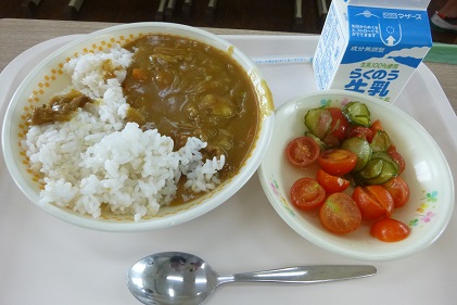 ヨーロッパでは、「トマトが赤くなると医者が青くなる」と言われています。トマトにはそれだけたくさんの栄養があるのですね。今日は新鮮でみずみずしいミニトマトときゅうりのサラダでした。とっても甘くておいしかったです。