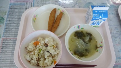 「ふきよせごはんとししゃもフライを一緒に食べるとおいしかったです。」(4年生)