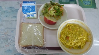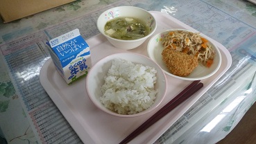 給食ではかぼちゃとひき肉のフライがでました。子どもたちも口々においしいといいながら食べていました。