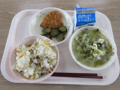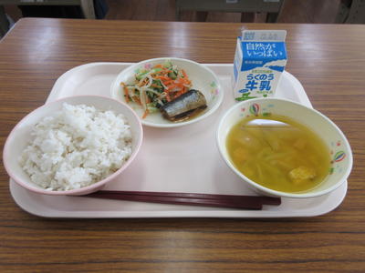 今日は、イカ、キャベツ、きゅうり、わかめが入っている「酢みそあえ」が出ました。