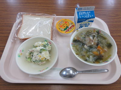 パンの日は、手を使って食べるので、いつも以上に、しっかり手洗いを心がけなければなりませんでした。これからもしっかり手洗いを気をつけさせていきたいと思います。