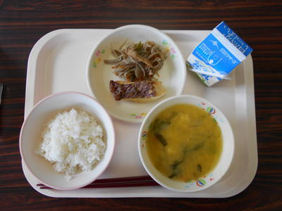 ご飯 牛乳 味噌汁 鯛の香味焼き きんぴらごぼう