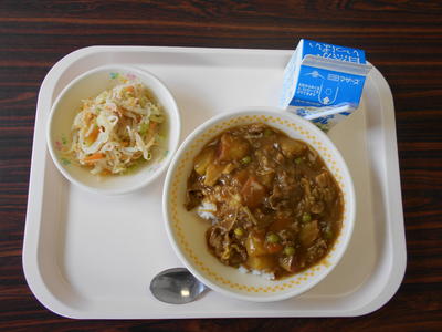 森のキノコカレー 牛乳 切り干し大根のサラダ