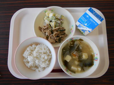 麦ご飯 牛乳 すき焼き風煮 海藻サラダ