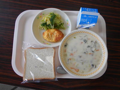 ミルクパン 牛乳 豆のトマトスープ 米粉グラタン かぽちゃムース