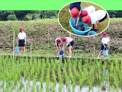 田んぼにコイを放流したよ☆