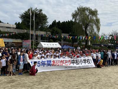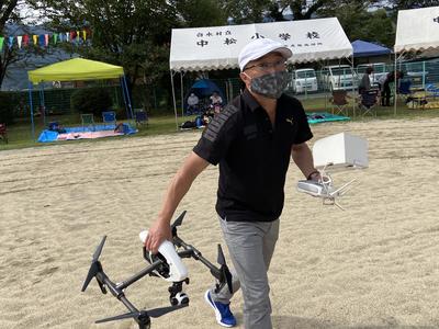 記念誌作成も着々と進んでいますが、9月19日(土)には、中松小学校最後の運動会が行われました。その中休みの時間に閉校記念誌に掲載するための集合写真をドローンを使って行いました。ドローンは松の木在住の4年・2年の保護者の方にお願いすると快く引き受けてくださいました!
