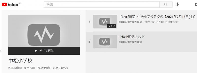 以前からお伝えしておりましたとおり、閉校式典は一部保護者と関係者のみで行います。そこで、保護者の方々、地域の方々はもちろん、県内はもとより広く日本各地にいらっしゃる中松小学校の卒業生や関係者の方々に閉校式典の様子を見ていただけるよう、You Tubeによる生ライブ配信を行います。