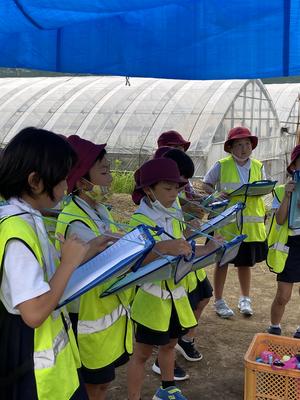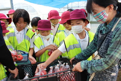 運動会に向けてのブログばかり書いていますが、しっかり学習も進めています。金曜日の3,4校時には3年生は社会科の学習の一環で仮川でトマトを作っていらっしゃる3年生保護者のビニールハウスに見学に行ってきまいした。