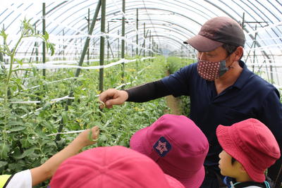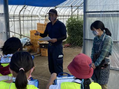 子どもたちが事前に考えてきた質問(・なぜ、トマトを作り始められたのですか? ・収穫したトマトはどこに出すのですか)に丁寧に答えて下さっていました。