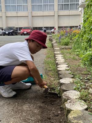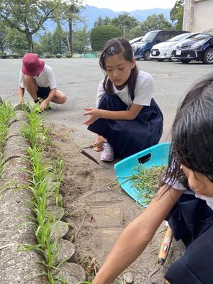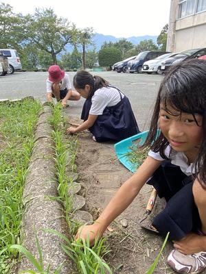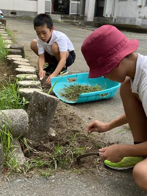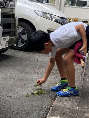 2年生の子は、アスファルトの隙間に生えていた草を一人でずっと取ってくれていました。