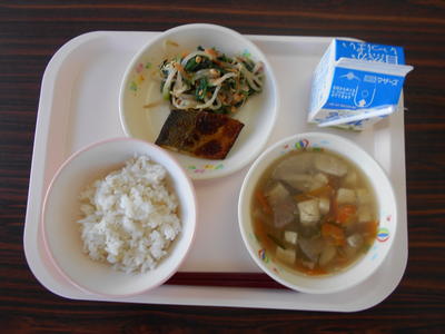牛乳 麦ご飯 のっぺいじる ピーナッツ和え さばのカレー焼き