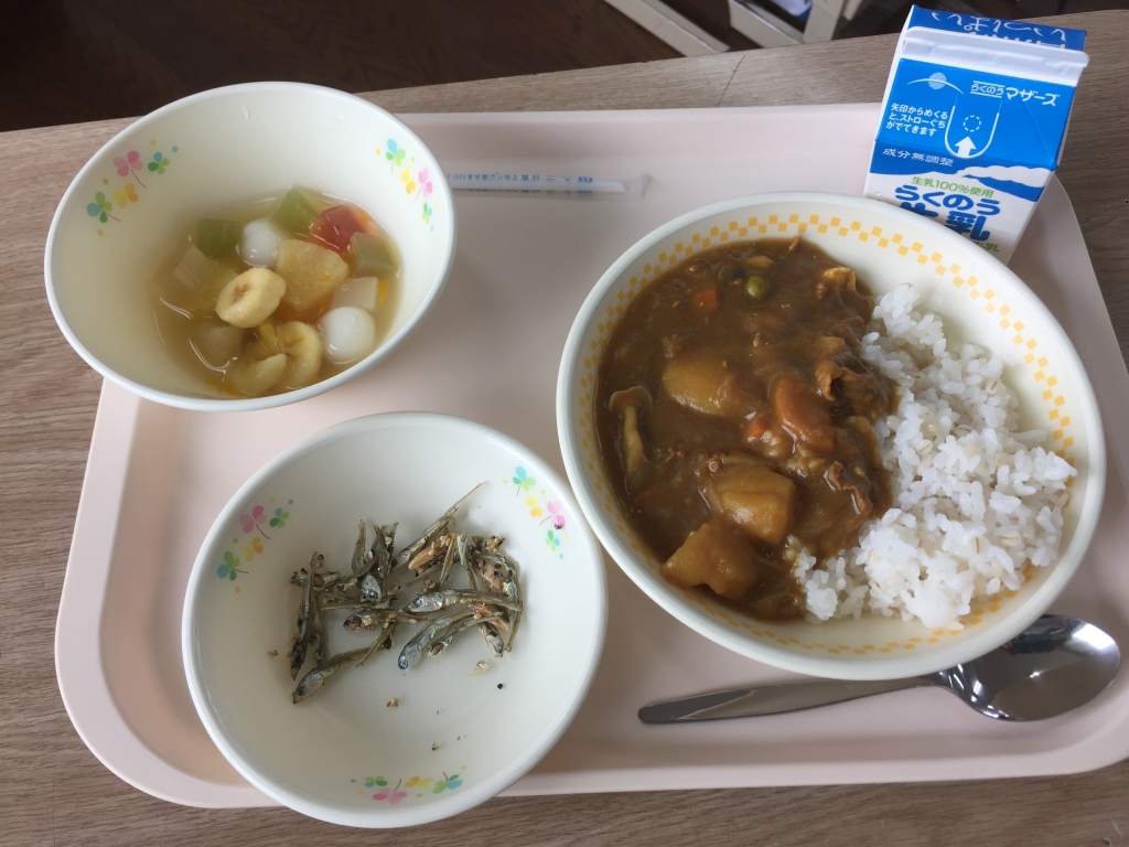 今日は、赤牛をふんだんに使ったカレーライスでした。給食に赤牛が出るのは、県内でも南阿蘇村の給食だけではないでしょうか?こんな贅沢な給食を食べられている子ども達がうらやましい限りです!食後は甘~いフルーツ白玉もあり、本日も大満足な給食になっているようでした。