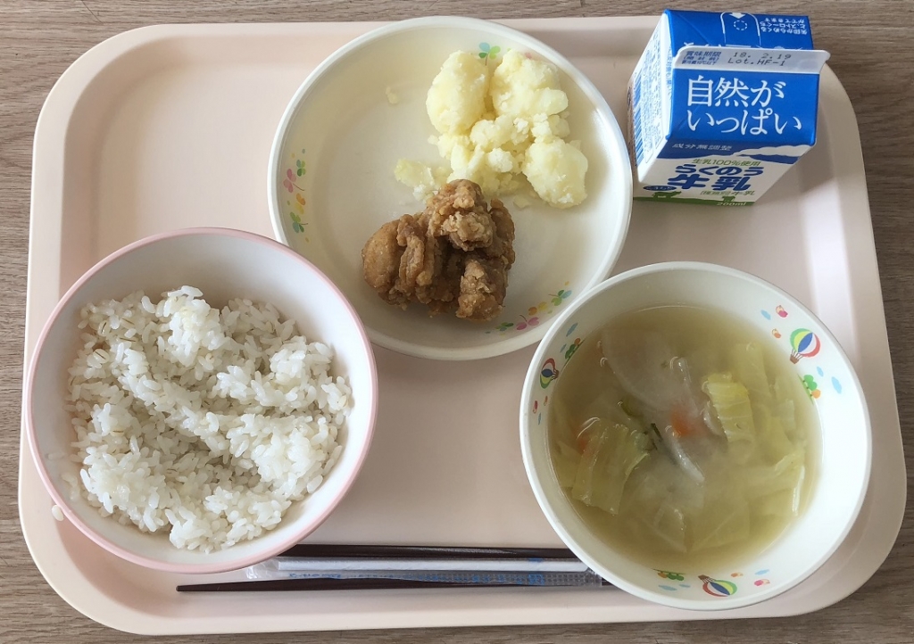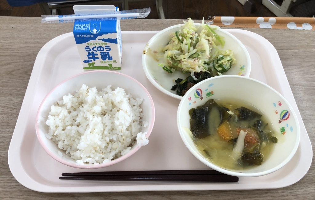 今日は、南阿蘇西小学校の5年生が育てたお米を使って、白ご飯を作りました。「給食で、たくさんの友達に食べてもらいたい!」と給食用にいただいているそうです。愛情がたくさんつまったお米です。南阿蘇西小学校の5年生に感謝していただきましょう。
