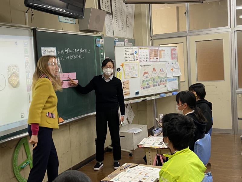 上の写真は、水曜日に本校5年生で行われた外国語の校内授業研究会。担任の先生とALTの先生の2人の協力のもと授業が進められていきます。