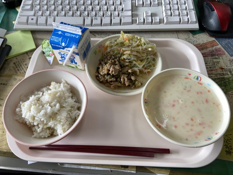 メインディッシュは、豚肉の生姜焼き。写真の子が考えてくれました、おめでとうございます^^!