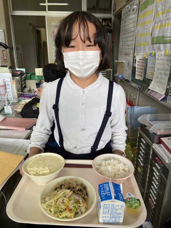 金曜日の給食は、給食週間にちなんで2学期に村内の各学校の子どもたちから応募があった中から最優秀賞に選ばれた給食がメニューとしてだされました。